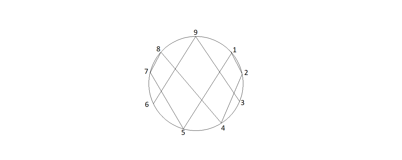 Take the numbers 1 to 9 and place them in clockwise order by starting with number 9 on top. Make a line from 1 to 2 then 4,8,7,5 and back to one. 1×2=2. 2×2=4. 4×2=8. 8×2=16 but we want one digit numbers so we do 1+6=7.7×2=14, 1+4=5. Or we can also double 16. 16×2=32. 3+2=5. 5×2=10. 1+0=1. We can also double the 32. 32×2=64. 6+4=10. 1+0=0. This is why we connected these numbers like that. You can keep multiplying by 2 and add the numbers to get single digits but you will always get 1,2,4,8,7,5 and connect the 5 to 1.